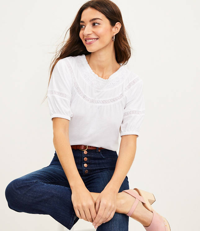 Petite Lace Trim Peasant Top Very well made.