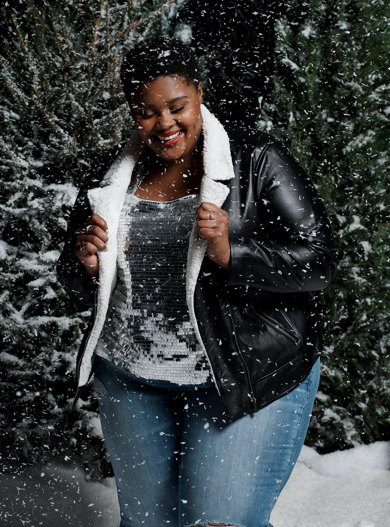 Plus Size Faux Leather Sherpa Line Moto Jacket Torrid Very well made.