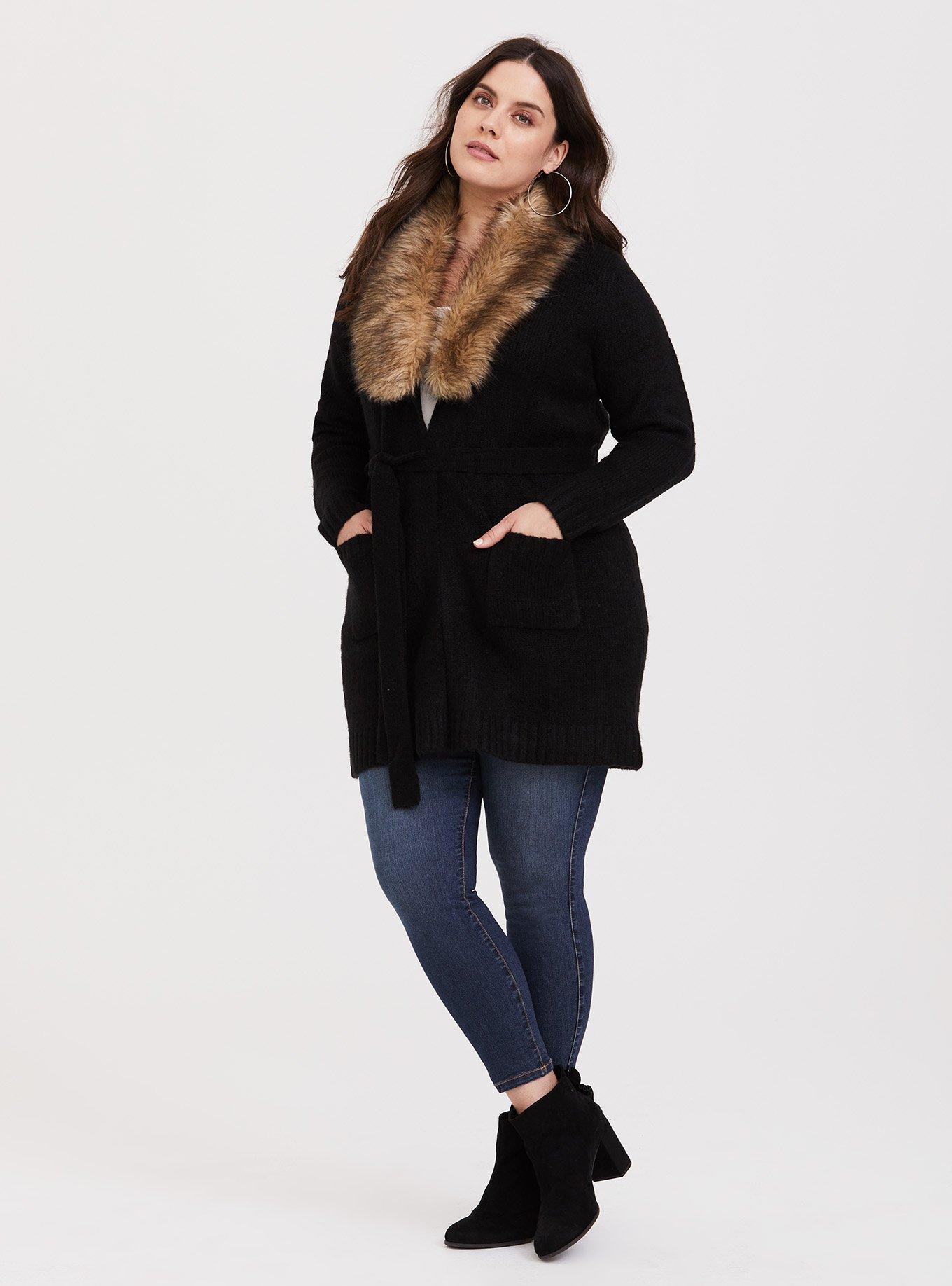 Plus Size Chunky Coatigan Fur Trim Collar Belted Sweater Torrid Very well made.