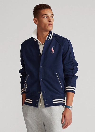 Ralph Lauren Pink Pony Fleece Baseball Jacket In Spring Navy Very well made.