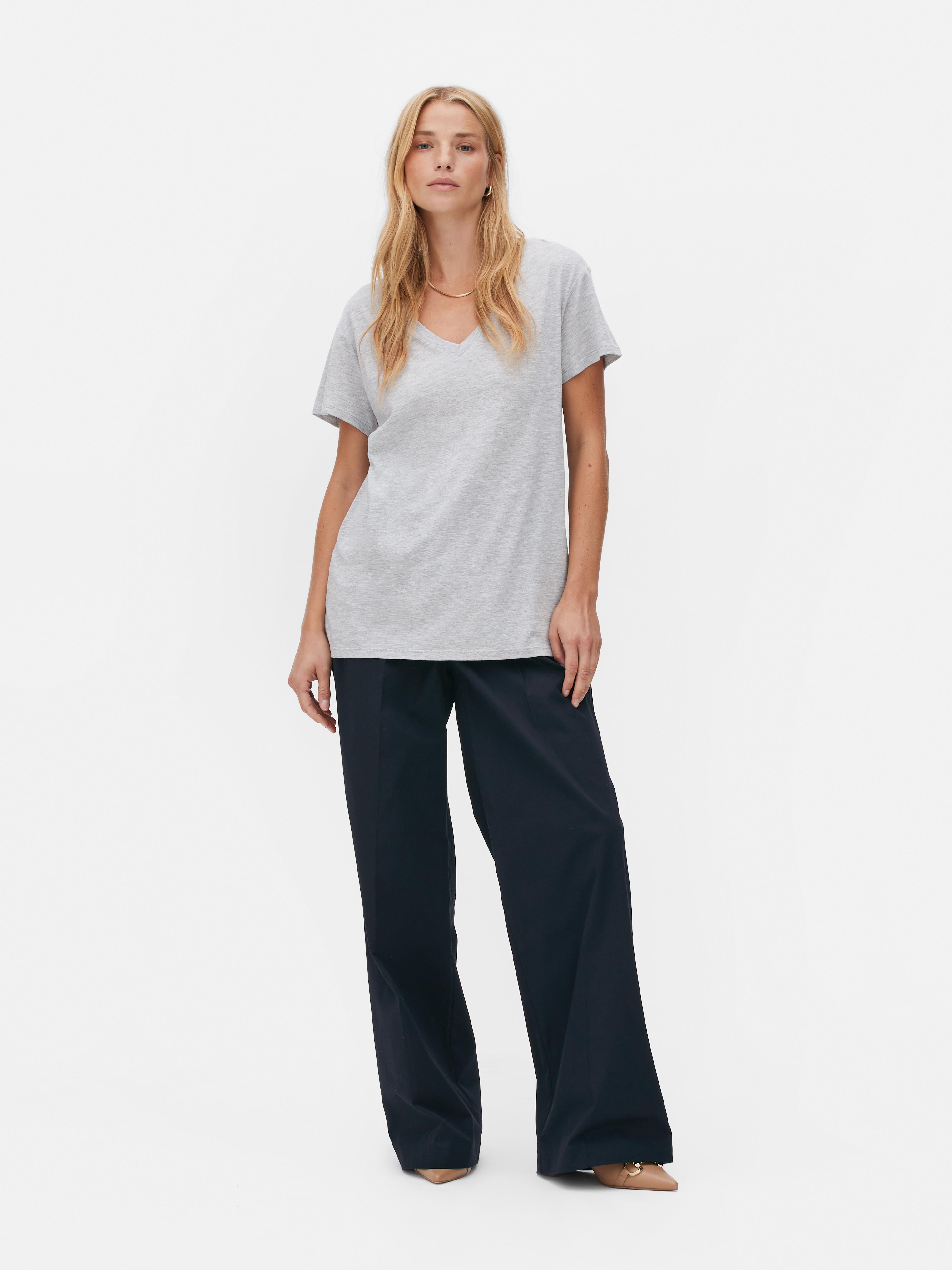 Womens Light Grey Cotton Blend V Neck T shirt Primark Very well made.