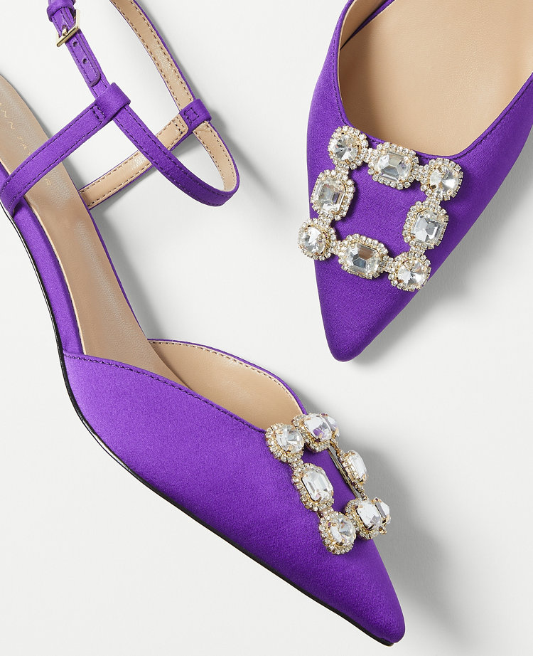 Crystal Buckle Satin Kitten Heel Pumps Very well made.