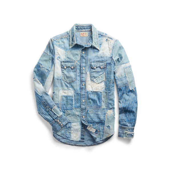 Slim Fit Repaired Denim Western Shirt Very well made.