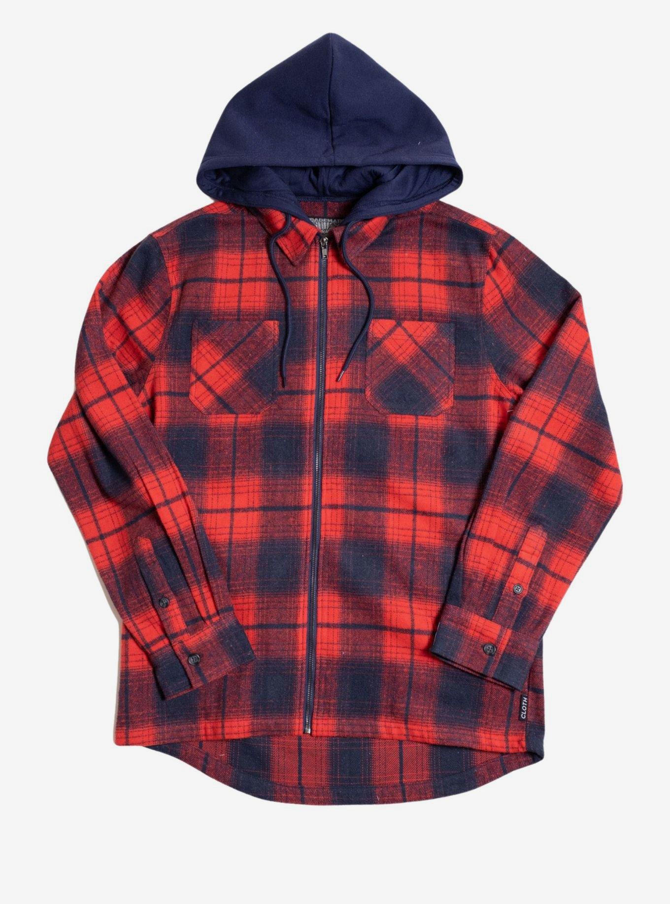 Hot Topic Red Navy Flannel Hooded Zip Shacket Hamilton Place Very well made.