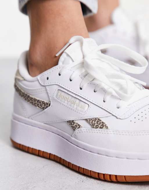 Reebok Club C Double sneaker in white and leopard print Very well made.