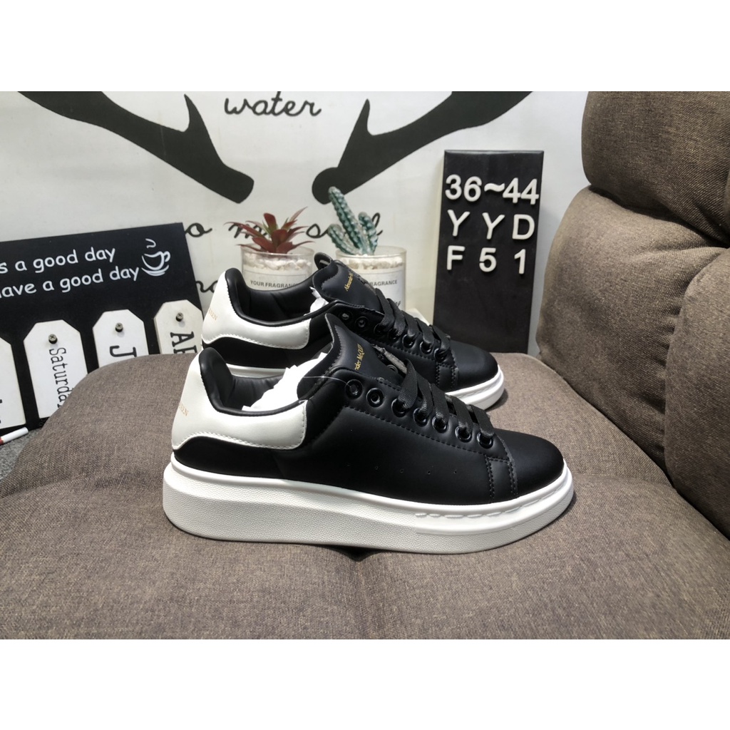 ALEXANDER MCQUEEN Small Black Shoes with Genuine Leather Thick Sole to Enhance Couples Versatile Fashion Shoes YYDF51 Very well made.