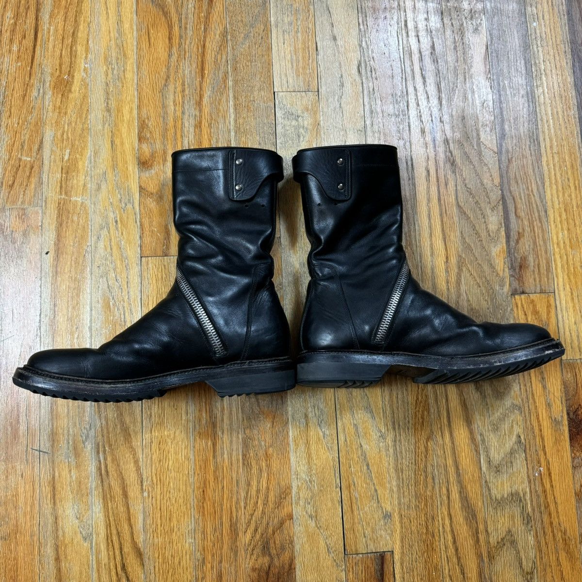 RICK OWENS LEATHER Spiral Zip Creeper Boots Size 43 10 Black Very well made.
