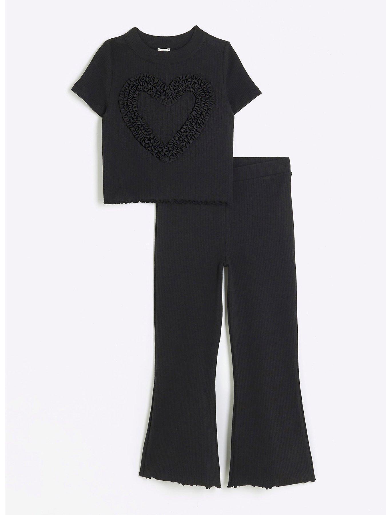 River Island Girls Heart Rib T Shirt And Flares Set Black very Very well made.