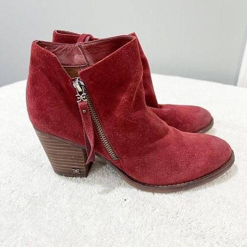 Sam Edelman Womens Suede Ankle Boots Red Sz 8.5 Spice Mahogany Very well made.