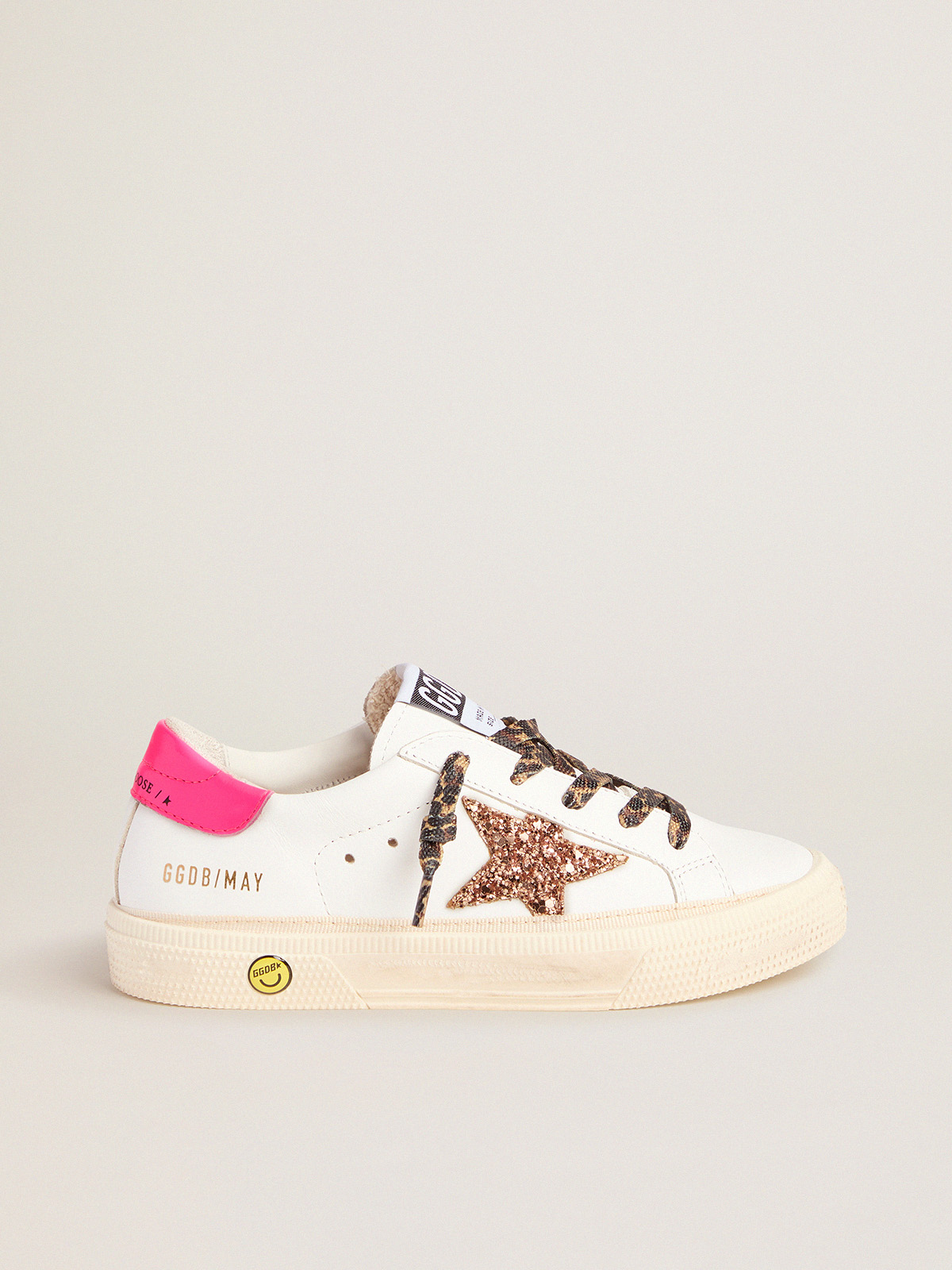 Sneaker May con stella in glitter rosa pesca e lacci leopardati Very well made.