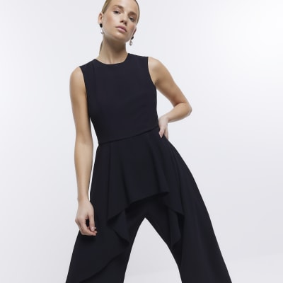 Black sleeveless ruffle jumpsuit River Island Very well made.