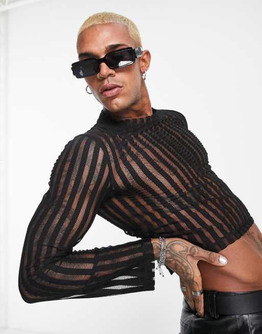 Striped Mesh Long Sleeve Top Black NA KD Very well made.