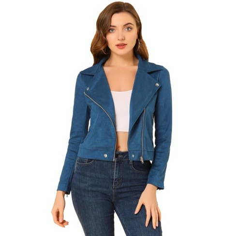 Allegra K Women s Faux Suede Stand Collar Zip Up Long Sleeve Moto Very well made.