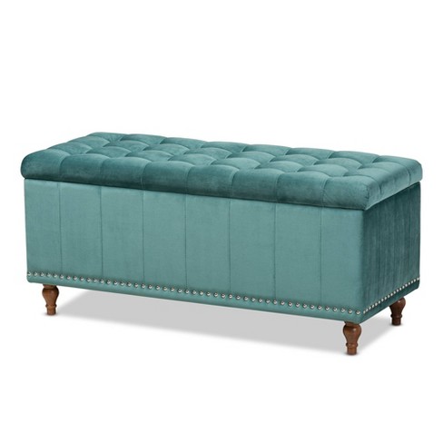 Kaylee Velvet Upholstered Button Tufted Storage Ottoman Bench Teal Very well made.