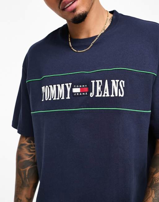 Tommy Jeans stripe flag logo t shirt in navy Very well made.