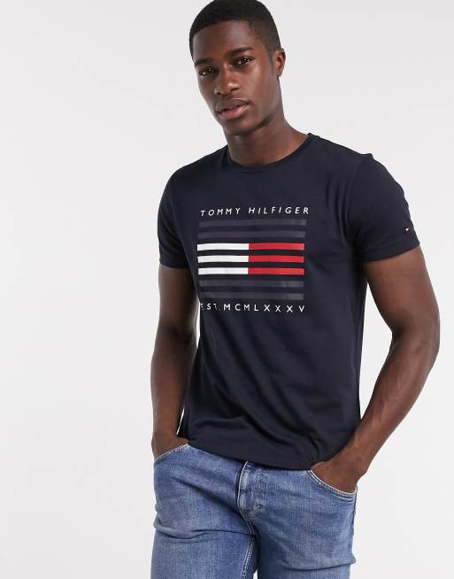 Tommy Hilfiger corp flag lines logo t shirt in navy ASOS Very well made.