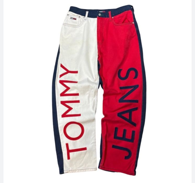 VTG 90S TOMMY Hilfiger Colorblock Jeans 32 Aaliyah Big Flag Pants Very well made.