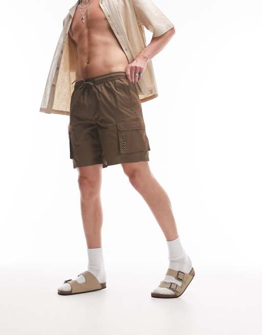 Topman skinny cargo swim shorts in brown Very well made.