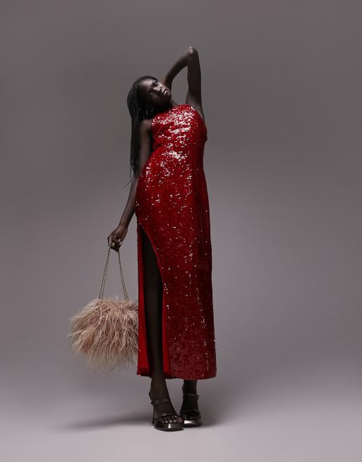 Topshop disco sequin midi dress in red Very well made.