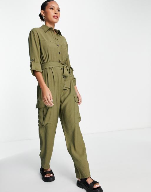 Topshop utility jumpsuit with pockets in khaki ASOS Very well made.