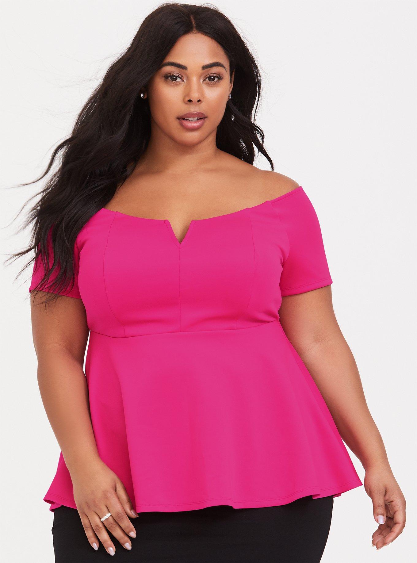 Plus Size Scuba Off Shoulder V Bar Peplum Top Torrid Very well made.