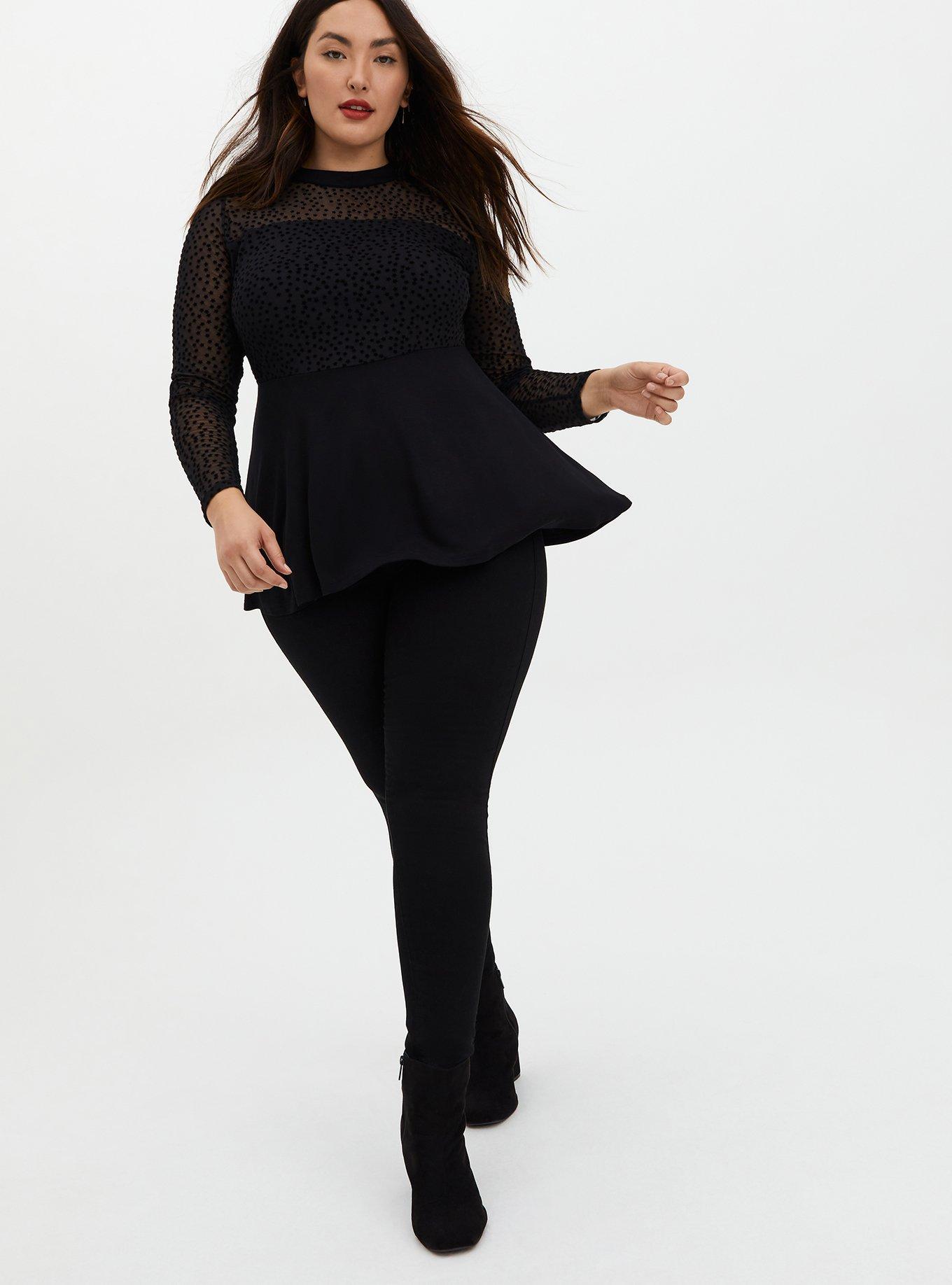 Plus Size Black Star Mesh Premium Ponte Peplum Top Torrid Very well made.