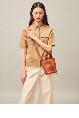 10173 TORY BURCH Miller Mini Bucket Bag AGED CAMELLO Very well made.