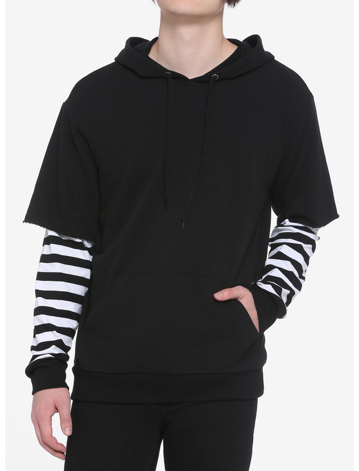 Black White Stripe Twofer Hoodie Hot Topic Very well made.