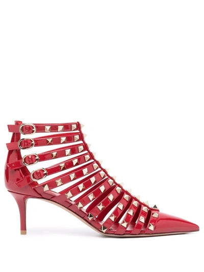 Valentino Garavani Alcove Patent Rockstud Gladiator Booties In Red Very well made.