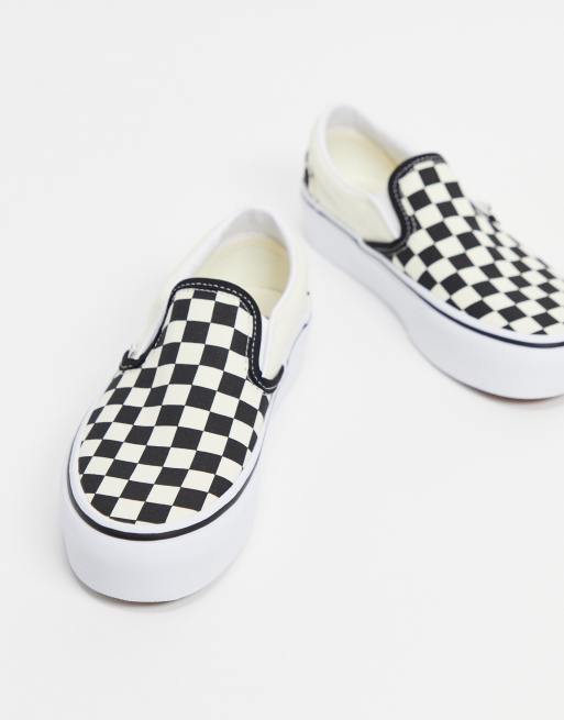 Vans Classic Slip On Platform checkerboard sneakers in black and white Very well made.