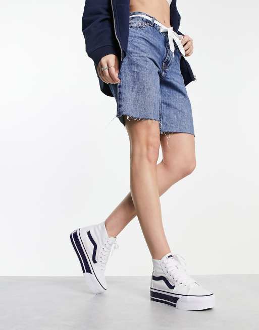 Vans Sk8 hi tapered stackform sneakers in white with navy stripes Very well made.