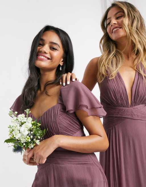 ASOS DESIGN Vestito lungo da damigella a maniche corte con arricciature Very well made.