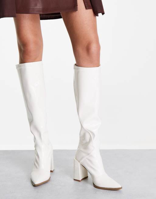 White Patent Knee Boots With Stiletto Heels Sexy Shooz Very well made.