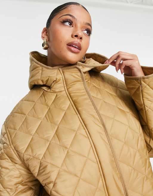 ASOS DESIGN Tall longline quilted coat in camel Very well made.