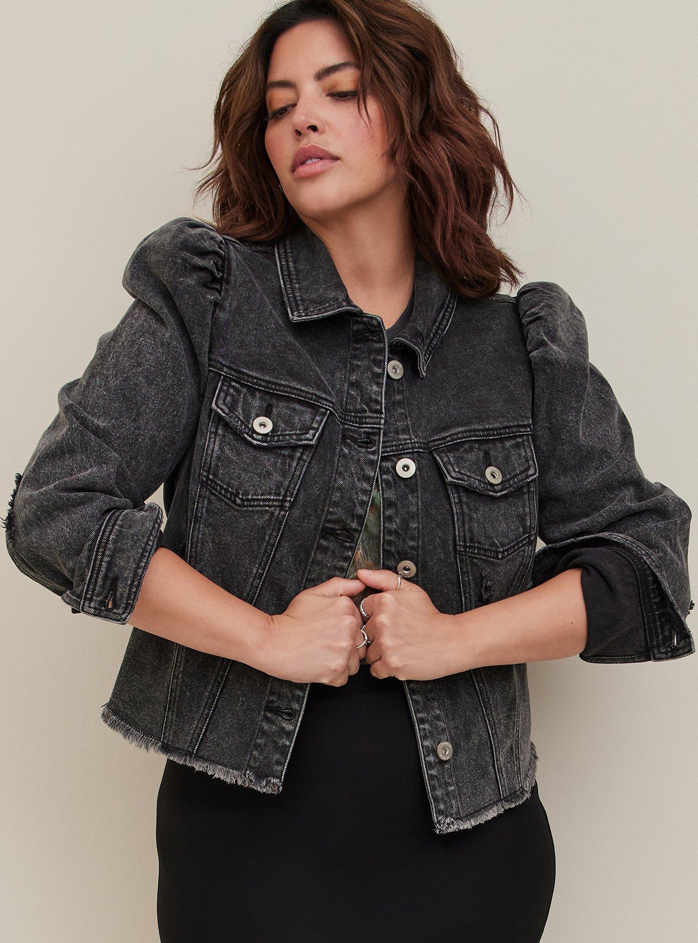 Plus Size Trucker Puff Sleeve Jacket Denim Black Torrid Very well made.