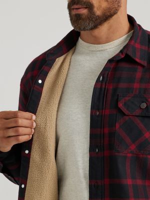 Men s Wrangler Heavyweight Plaid Sherpa Lined Shirt Jacket Very well made.