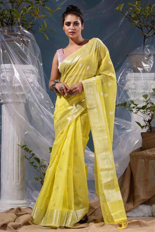 Buy BANARASI PATOLA Yellow Yellow With Silver Zari Weaved Banarasi Very well made.