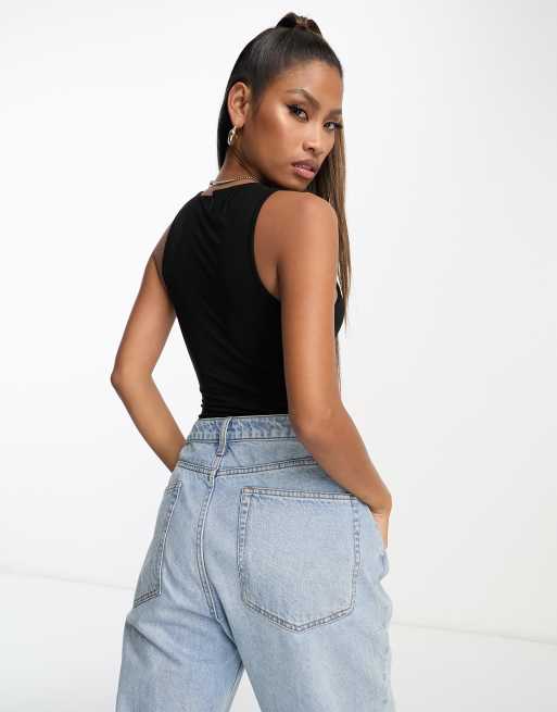 ASOS DESIGN cotton scoop neck vest bodysuit in black BLACK ASOS Very well made.