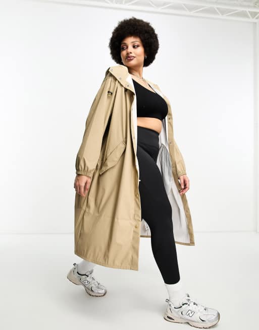 ASOS DESIGN Curve rubberised rain parka coat in stone Very well made.