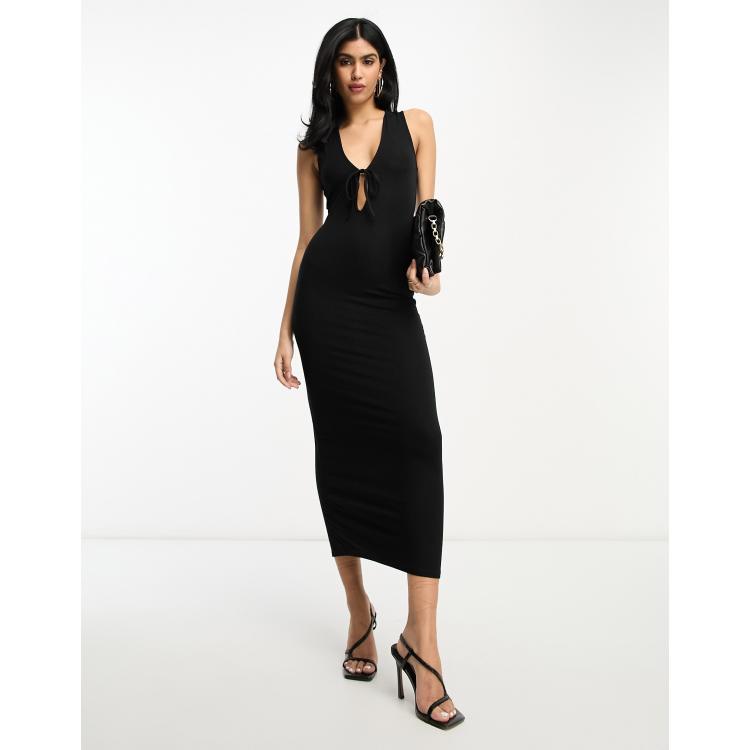 ASOS DESIGN deep plunge tie front midi dress in black ASOS Very well made.