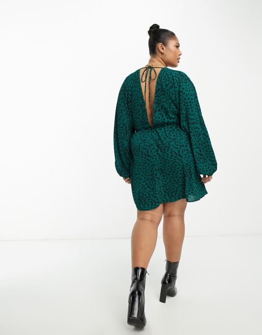 ASOS DESIGN Curve chuck on swing mini dress in green animal print Very well made.