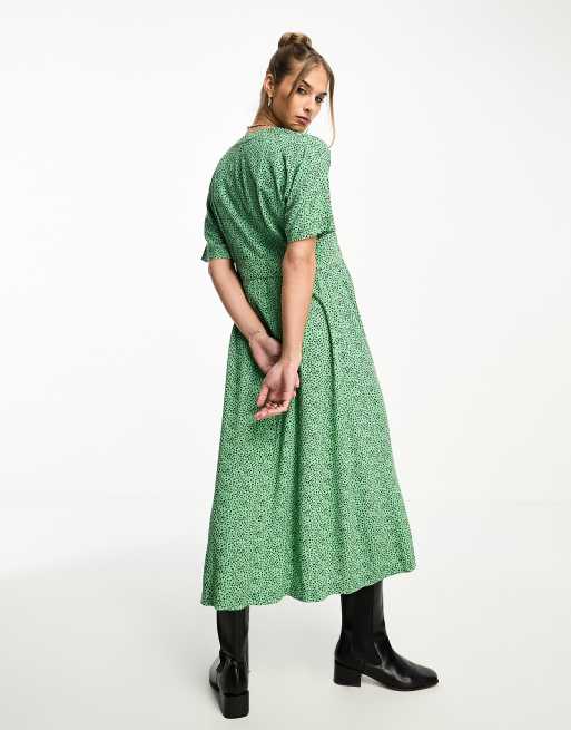 Whistles leopard print side button midi dress in green Very well made.