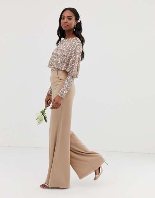 Maya Tall cape detail jumpsuit with tonal delicate sequin top in taupe blush Very well made.
