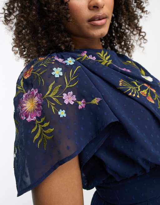 ASOS DESIGN floral embellished maxi dress with flared cuff detail in navy Very well made.