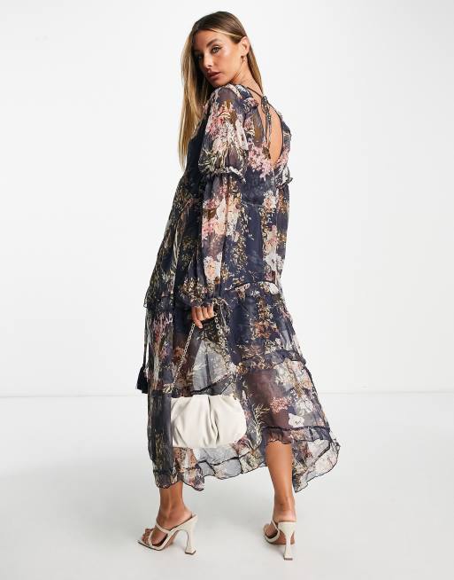 ASOS DESIGN floral embellished maxi dress with flared cuff detail in navy Very well made.