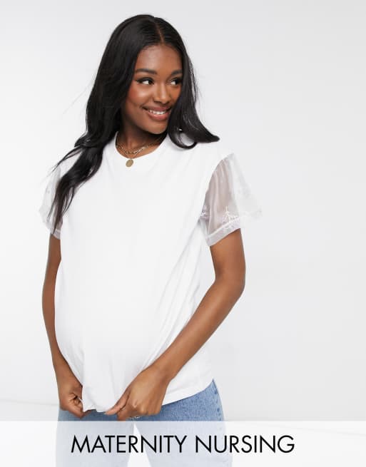 ASOS DESIGN Maternity nursing double layer t shirt with embroidered sleeve Very well made.
