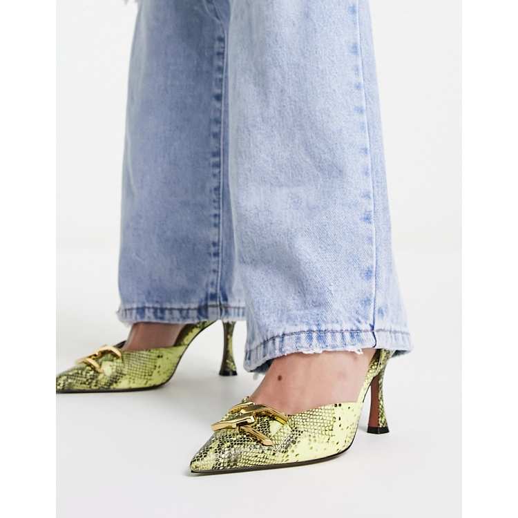 ASOS DESIGN Sommers chain detail mid heeled shoes in lime snake ASOS Very well made.