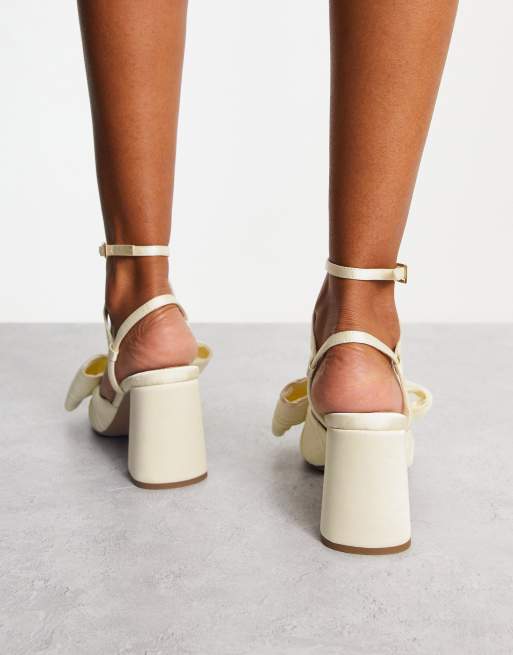 ASOS DESIGN Hitched bow detail mid block heeled sandals in ivory Very well made.