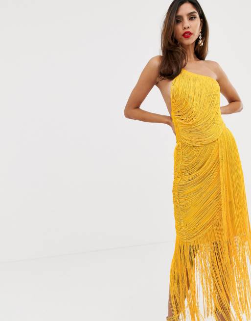 ASOS DESIGN all over drape fringe one shoulder maxi dress Very well made.