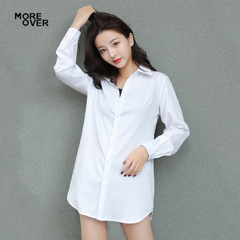S 5XL Plus Size Shirt Women White Shirt Long Sleeve Elegant Solid Very well made.